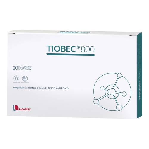 TIOBEC 800Descrizione Integratore alimentare a base di acido alfa-lipoico (acido tiottico). Con tecnologia Fast-Slow. Ingredienti Acido alfa-lipoico. Senza glutine. Caratteristiche nutrizionali Contenuti medi per compressa Acido alfa-lipoico 800 mg Modalità d'uso Si consiglia di assumere 1 compressa al giorno, preferibilmente a stomaco vuoto (un'ora prima del pasto o 2-3 ore dopo). Avvertenze Non superare la dose giornaliera consigliata. Tenere fuori dalla portata dei bambini al di sotto dei 3 anni di età. Gli integratori alimentari non vanno intesi come sostituti di una dieta variata ed equilibrata e di uno stile...